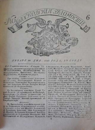 Дорогие друзья, вот и наступил новый 2021 год! Мы очень рады, что рубрика «Свидетели времени: дореволюционная периодика» вам интересна. В этом году исполняется 265 лет со дня выхода первого номера газеты «Московские ведомости», которая была учреждена указом императрицы Елизаветы Петровны при Московском университете в 1756 году.