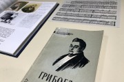 К юбилею писателя в Центре редких и ценных изданий организована книжная выставка. Внимание посетителей привлекут изящное малоформатное (12,8×8,2 см) издание полного собрания сочинений А. С. Грибоедова 1860 г., факсимильная копия первого отдельного издания комедии «Горе от ума» 1833 г., а также роскошное библиофильское издание комедии 1913 г. с многочисленными иллюстрациями Дмитрия Николаевича Кардовского (1866-1943), имевшего в начале XX века репутацию одного из лучших русских книжных графиков. Издание дополнено факсимильным воспроизведением афиши первого представления комедии в Петербурге 26 января 1831 г. и нескольких листов рукописи автора и рукописных списков комедии.