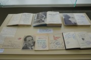 Инскрипты, оставленные на книгах, принадлежат архитектору П.Ю. Сюзору, русскому офицеру и военному писателю В.Ф. Жерве, филологу-слависту К.Я. Гроту, организатору системы психиатрического патронажа в России Н.Н. Баженову, будущему доктору искусствоведения И.С. Зильберштейну, правнуку А.С. Пушкина. Среди самых ценных можно отметить автографы советских космонавтов – Юрия Алексеевича Гагарина и Владимира Викторовича Аксенова. На выставке представлены автографы известных писателей: К.М. Симонова, А.И. Солженицына, А.А. Вознесенского, нашей современницы Л. Анисаровой и др. В краеведческом разделе – издания с автографами Г.А. Богатовой, В.М. Касаткина, Н.В. Колгушкиной, И.П.Назарова.