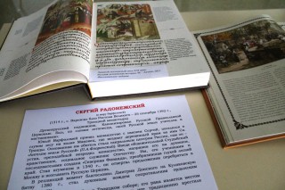 На выставке представлены книги о жизни и подвиге святого Сергия Радонежского, истории основания монастыря, о гениальном иконописце Андрее Рублеве и его знаменитой «Троице».